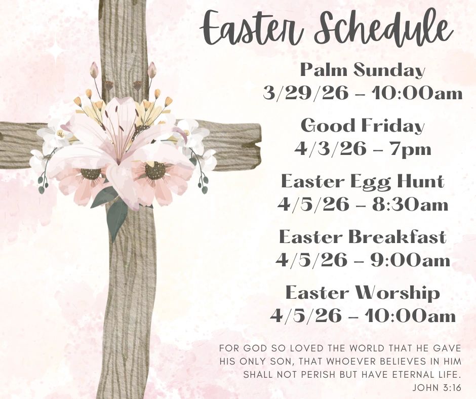 Our office is open Mondays from 7-11 AM and Wednesdays from 1-5 PM. We are also open Sunday Mornings from 9 AM -12 PM for our Sunday School and Worship Services. Pastor is available outside those hours by appointment. Please call or email us if you need counsel or prayers.